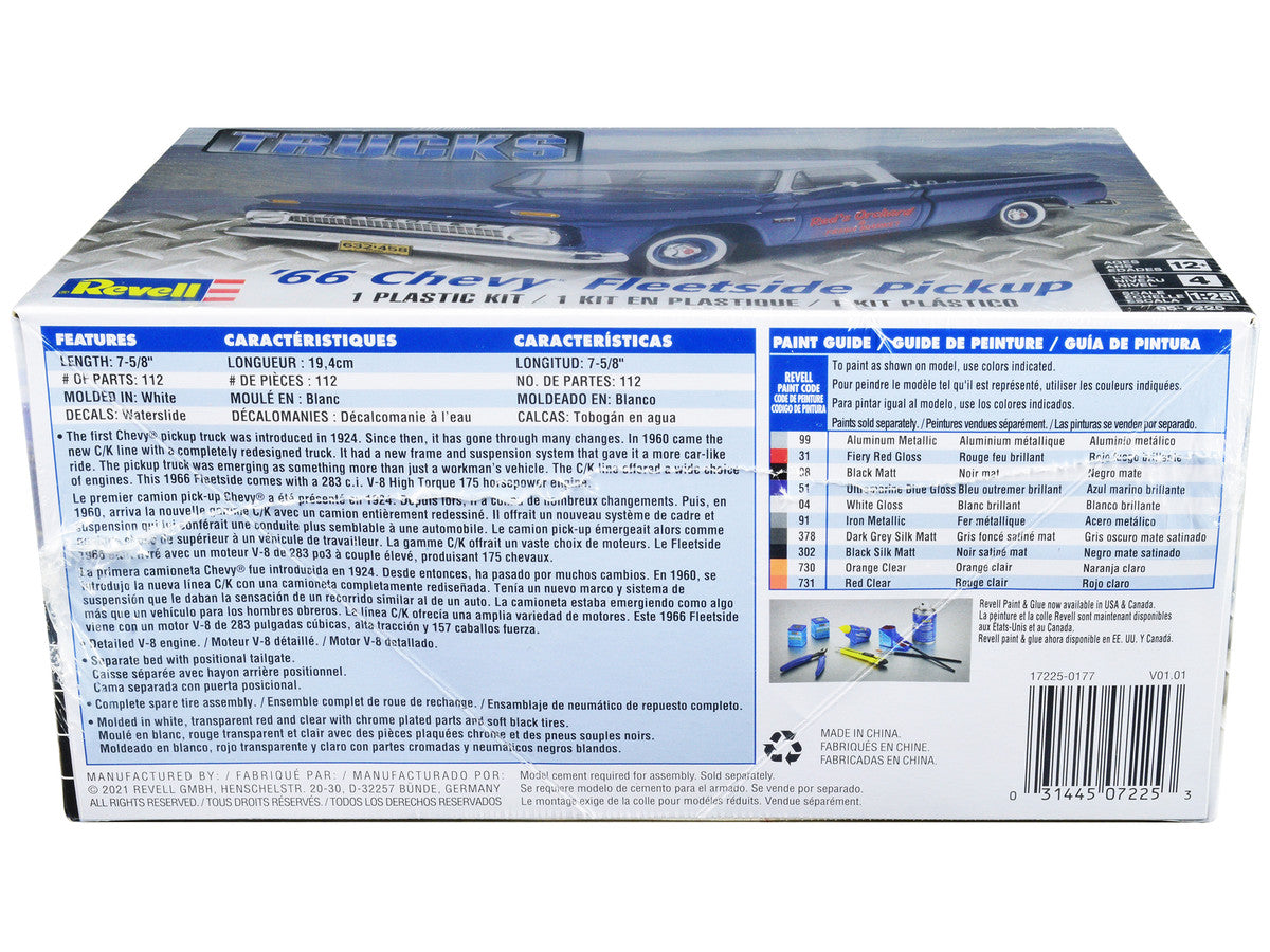 Revell 1966 Chevrolet Fleetside Pickup Model Kit 1 To 25 Scale Level 4